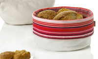 Die Stelton Brottasche ist maschinenwaschbar und für den Gebrauch mit Lebensmitteln geeignet. Die Brottasche kann für die verschiedensten Brotarten verwendet werden: aufgestellt für Baguette, umgekrempelt für Brötchen und Brotscheiben. Mittels versteckter Magnete im Saum kann die Tasche sogar verschlossen werden, um das Brot länger frisch und knusprig zu halten. Neu: Gestreifte Brottaschen in frühlingsfrischen Farben.